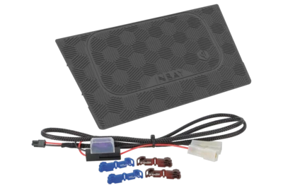Dieses Ablagefach unterstützt das kabellos induktive Laden von Smartphones mittels INBAY.