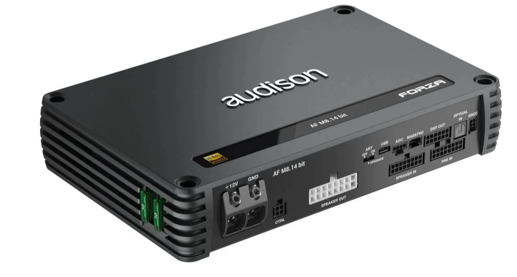 AF M8.14 bit verfügt über acht verstärkte High-Fidelity-Kanäle (90 W x 8 @4Ω, 140 W x 8 @2Ω*) mit dem audiophilen Klang der neuesten Generation der Audison D-Class-Technologie. Höhere Schaltfrequenzen, steilere Filterung und Komponenten mit höherer Toleranz liefern einen Klang, der die Erwartungen an Class D übertrifft – und das in einem erstaunlich kompakten Gehäuse! Dies wird mit einem nativen DSP kombiniert, der mit 24 Bit/96 kHz arbeitet, das Audioband auf bis zu 40 kHz erweitert und die begehrte High-Resolution-Zertifizierung erhalten hat. Die Überbrückung von Kanalpaaren ergibt 280W x 4 @4Ω*, was eine flexible und leistungsstarke Performance garantiert. Die Unterstützung der Absolute-Volume-Funktion der Audison B-CON garantiert maximale Bittiefe, auch bei drahtlosen Verbindungen!*Ausgangsdauerleistung (RMS) @14,4 VDC, 1% THD, alle Kanäle betrieben.TUNING-FUNKTIONEN DER NÄCHSTEN GENERATION FÜR MAXIMALE KONTROLLEDie völlig neue bit Drive PC-Software von Audison kann das Signal auf völlig neue Art und Weise analysieren, routen und korrigieren – jetzt können Sie den Klang mit einem einzigen leistungsstarken Tool messen, mischen und schließlich abstimmen! Die neue grafische Benutzeroberfläche vereinfacht jede Steuerung und Funktion, integriert akustische Messungen und sorgt für effizientes Tuning und großartigen Sound! Der Acoustic RTA ist in die Equalizer-Grafik integriert und ist mit Ihrem USB-Mikrofon oder Ihrer Soundkarte kompatibel. Die Funktion Final EQ ermöglicht eine abschließende Entzerrung, ohne die empfindlichen Links/Rechts-Frequenzverhältnisse zu beeinträchtigen. Die sechs verarbeiteten Vorverstärkerausgänge kommen zu den acht verstärkten Kanälen hinzu, so dass die DSP-Sektion des Forza problemlos ein größeres System verwalten kann.FORTGESCHRITTENE OEM-INTEGRATIONSMÖGLICHKEITENDie acht analogen Eingänge des Forza sowie ein optischer Toslink-Digitaleingang ermöglichen eine umfassende Konnektivität selbst mit den komplexesten OEM-Systemen. Wenn mehr analoge Eingänge benötigt werden, können mit der optionalen Erweiterungskarte F4IN vier weitere analoge Eingangskanäle hinzugefügt werden! Wenn ein koaxialer SPDIF- oder ein zweiter Toslink-SPDIF-Eingang benötigt wird, kann die optionale F2O-Erweiterungskarte verwendet werden. Audisons klassisches De-EQ-Verfahren wird durch De-Time- und De-Phase-Funktionen ergänzt, die eine Klangwiederherstellung in nahezu allen OEM-Systemen ermöglichen, wobei die elektrische Signalanalyse die korrekte Integration und Korrektur für jeden Eingangs- und Ausgangskanal gewährleistet. Die integrierte universelle Lautsprechersimulationstechnologie (USS) sorgt für maximale Kompatibilität mit jeder OEM-Quelle, ohne Stummschaltung oder Instabilität.AF M8.14 bit umfasst einen Satz von sechs hochwertigen Kabeln, die mit einem gedruckten Schutzstreifen vor den Molex-Steckern versehen sind, um die Torsionsfestigkeit zu erhöhen.