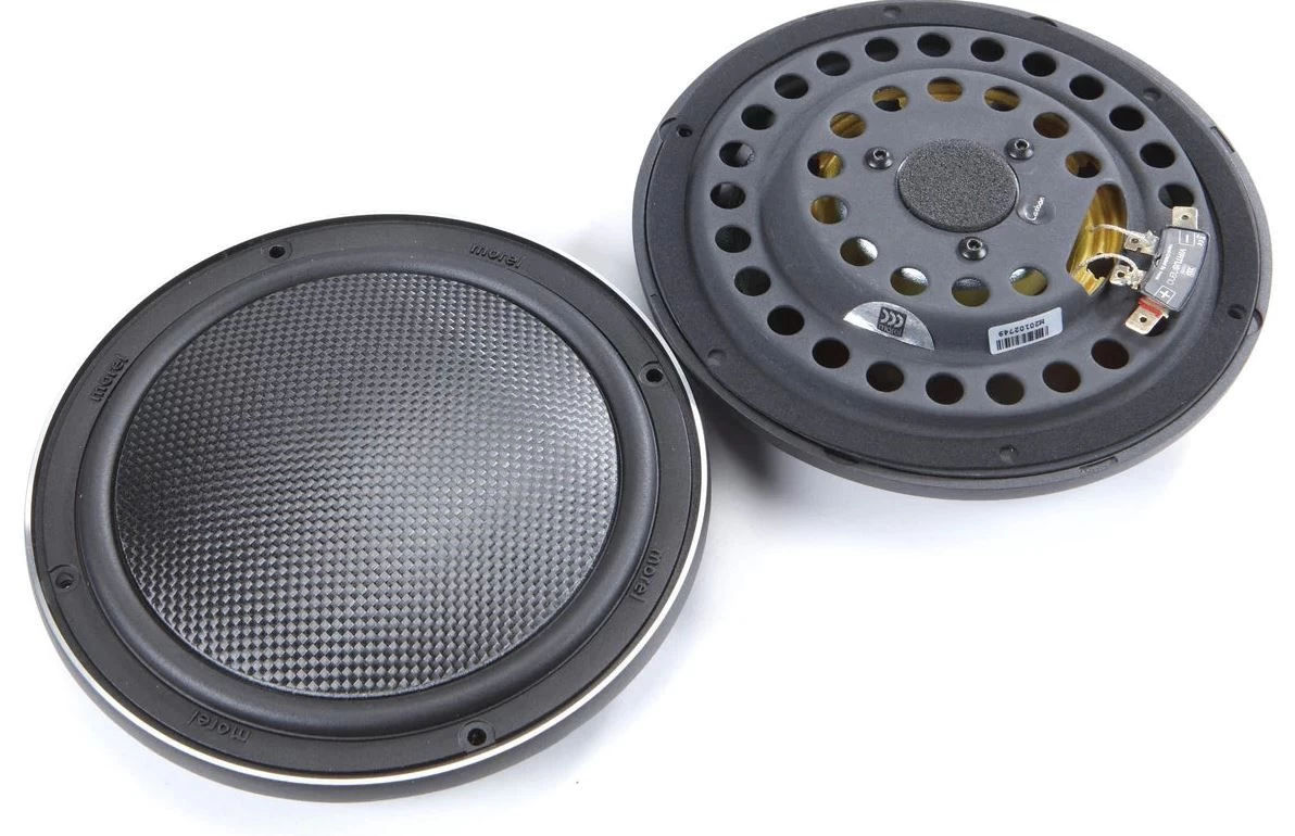 Das MOREL VIRTUS NANO CARBON 63 6.5″ (16,5cm) 3-Wege Kompo lautsprecherset macht seinem Namen Nano alle Ehre. Die Virtus Nano System sind mit den ultradünnen Virtus Nano-Treibern mit einer Einbautiefe von weniger als 1,8 cm ausgestattet! Die Tieftöner verfügen über eine kuppelförmige Kohlefasermembran, Morels EVC-Antriebstechnologie mit einem leistungsstarken Neodym-Magneten, eine große 2,1″-Schwingspule und einem CAR-Filter. Die hohe Frequenzen werden von kompakten 28 mm (1,1″) ACUFLEX MT120N-Hochtönern verarbeitet. Die 3-Wege-Sets erhalten den neuen Virtus Nano MM2 2,5″ kegelgewölbten Mitteltöner mit Dual-Neodym-Motor. Die Virtus Nano Carbon sind die dünnsten Car-Audio Lautsprecher der Welt und bieten dabei kompromisslos höchste Leistung und beste Klangeigenschaften!