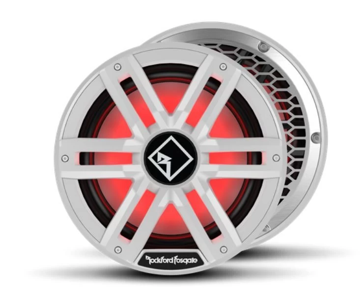 Die Rockford Color Optix™ Subwoofer sind Element Ready™ als auch IP67 zertifiziert, d.h. perfekt für Marine- und Outdoor-Einsatz geeignet. Die Modelle M1 und M2 sind mit einer speziellen LED Membran-Beleuchtung ausgestattet, die in sieben verschiedenen RGB Farben einstellbar ist.